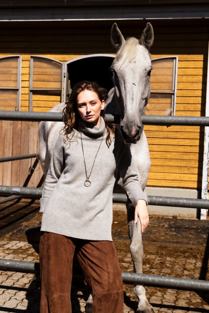 Der schlichte Kaschmirrolli mit hohen Seitenschlitzen umhüllt dich sanft und sorgt für leichte Bewegungsfreiheit – ein elegantes Must-have für jeden Winterlook.